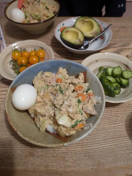 卵を大量に消費するため、一人卵3個を使用した卵とじ丼。