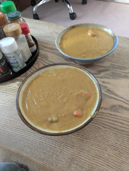 明日の私の昼ご飯は、カレーを水増しして食べるか。