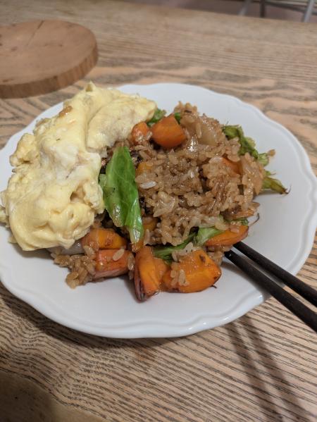 ご飯と卵を混ぜる容器を後で洗わねばと思うと
