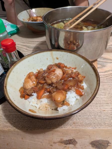 晩ご飯は、鶏肉のいためもの丼