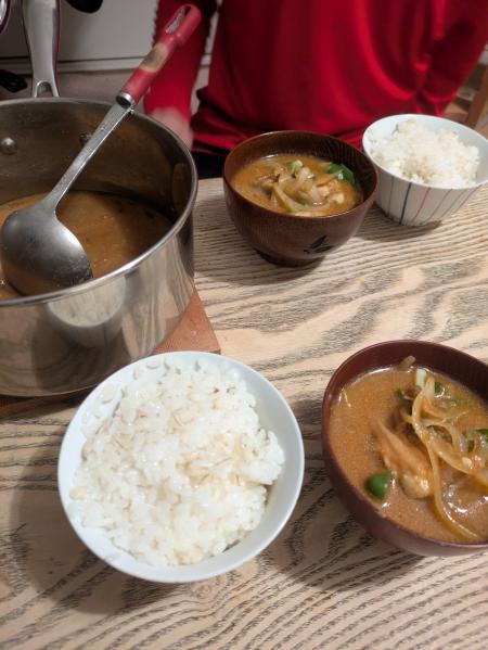 鍋の味噌汁(昨日作った残り)は