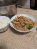 ひき肉丼とでも呼ぶのだろうか玉ねぎ、ニン....