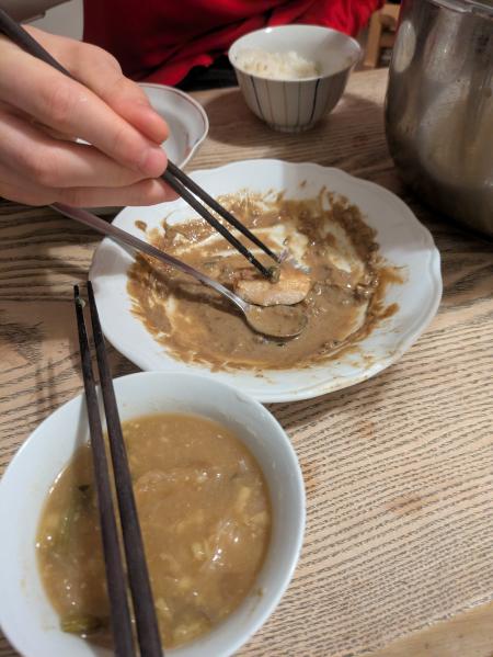ソースにつけた時